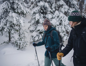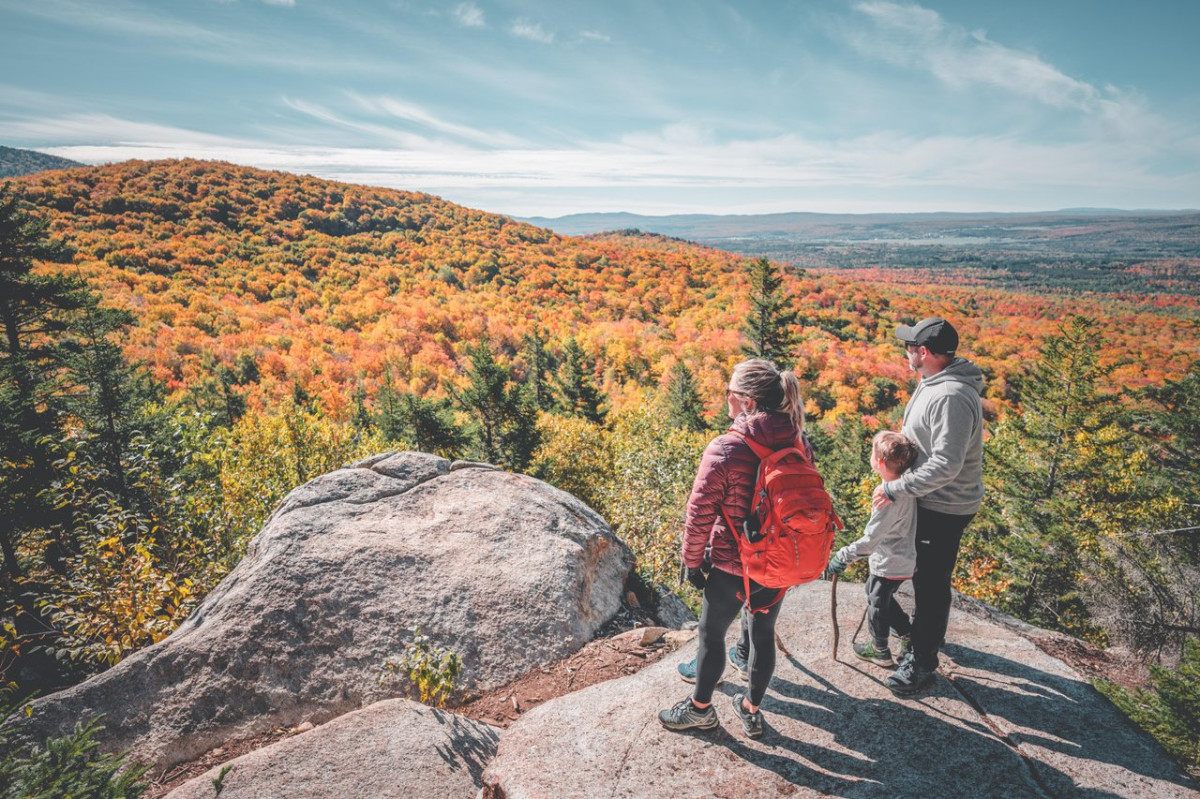 Heading out from the Franceville service sector, you start by following the Promenade du Ruisseau. Running along a narrow waterway, this rather level trail leads to the Sentier des Escarpements. Here you’ll find the official trailhead for this moderate uphill path that will take you, first across a deciduous forest, then along a rocky cliff through some very tall evergreens. When you reach the top, you’ll find an impressive view overlooking the park interior and its valley. In the fall, you’ll discover a vast patchwork of colours spreading out below your feet! You’ll also be able to spot the summits of Mount Megantic and its observatory far off in the distance. The hike totals 6.7 km with an elevation of 180 m really worth the effort!