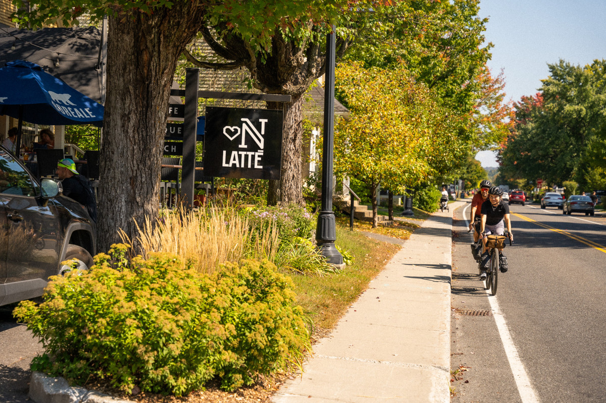 Along this gravel road, a stunning panoramic view of Mount Orford unfolds around a bend. The perfect energy boost for day two of your ride! Psst... This viewpoint is also part of the La boucle des érables gravel loop.