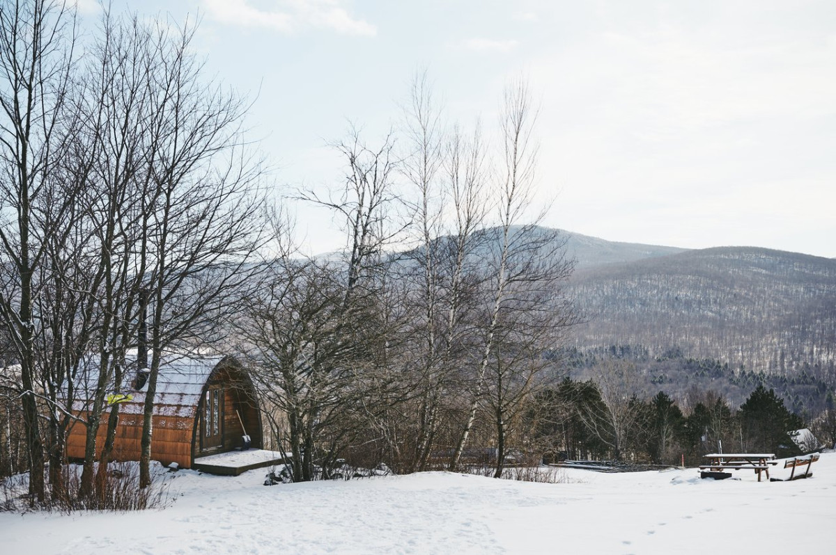 Located at the foot of Mount Chagnon, in Bolton-Est, this majestic 175-acre forest domain, with its three streams, offers 14 ecolodges built from A to Z with the forest’s noble resources. Here, you’ll be in perfect harmony with nature as you discover the wealth of wildlife and flora on the 12 kilometres of groomed trails you can access on foot or snowshoes (there’s an on-site rental service). If you’re hoping to go off the grid for a while, you’ll note there is no WIFI connection that will reach your ecolodge!