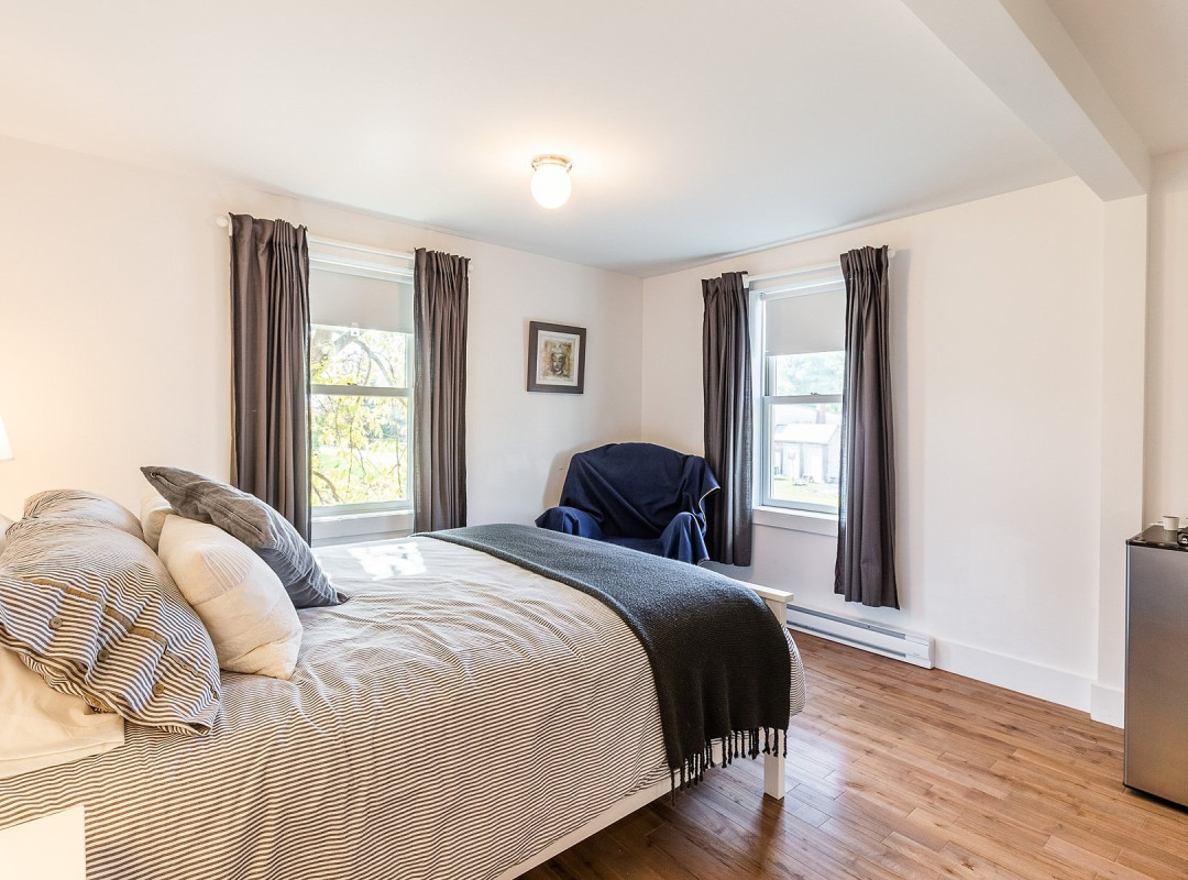 Visit, eat, sleep… At Espace Old Mill, everything is experienced in one space. As soon as you arrive, you’ll set your bags down in one of the cozy rooms you’ll find at La Cecil House, the delightful inn nestled above the gastronomic restaurant. No need to head back on the road: the produce farm, restaurant and accommodations form a cohesive whole, right in the heart of the charming village of Stanbridge East.