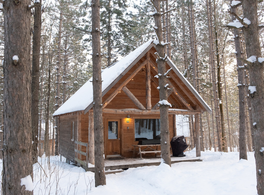 On a posé nos valises chez Huttopia Sutton, un endroit que l’on connaissait davantage en formule estivale avec sa grande offre de prêt-à-camper, mais qui nous a tout autant charmés en hiver avec sa quarantaine de chalets en bois répartis en forêt, et à moins de 5 minutes de la station de ski.