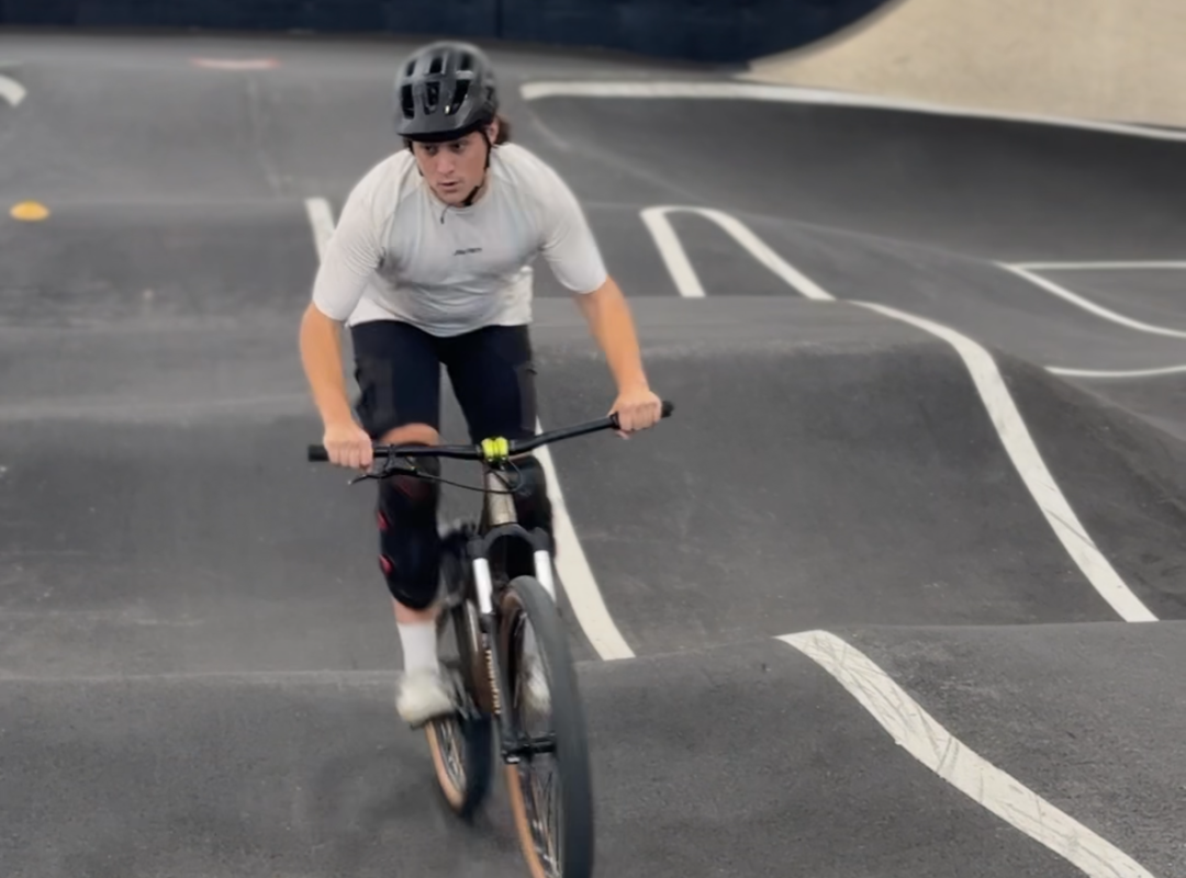 After two hours on the track, we move on to the pump track for another round of fun. After the rush of high-speed laps on a banked track, now it’s all about balance, momentum, and flow.