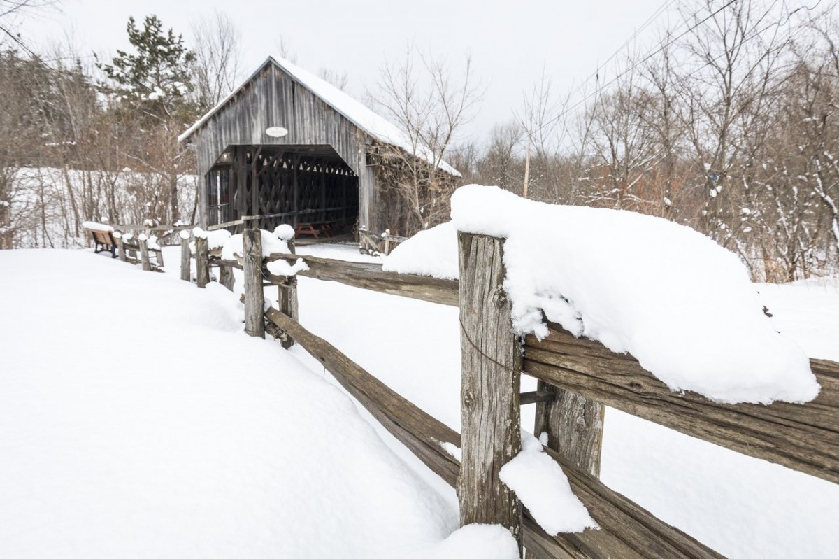 From the Cœur villageois, you can follow the trails along the lovely Eaton River, leading to the 1868 John Cook covered bridge – a 3-km loop.