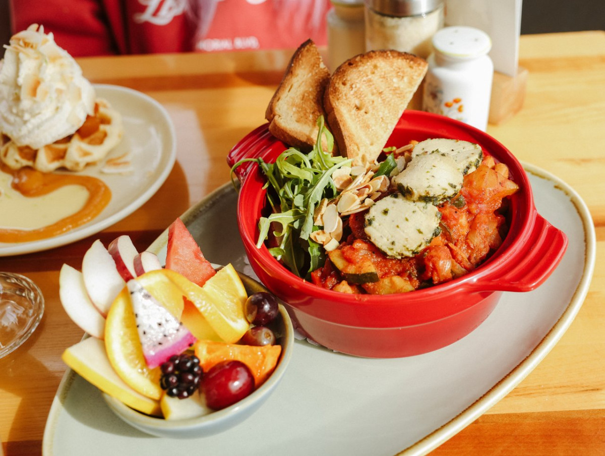 A wide selection of hearty plates featuring eggs Benedict—and of course, waffles! Everything is lovingly prepared with a focus on offering a balanced menu, partly made with locally sourced ingredients.